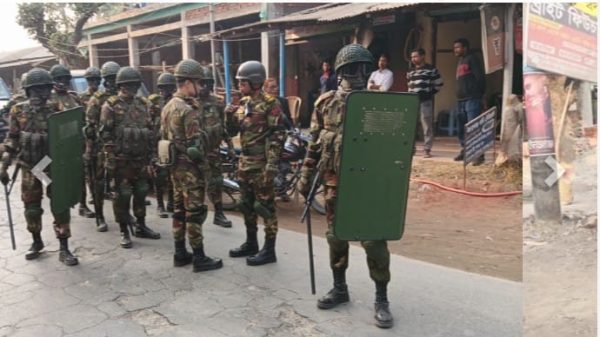 বদরগঞ্জে অবৈধ অস্ত্র মাদক ও বেআইনি কার্যক্রম নিয়ন্ত্রণে সেনাবাহিনীর মহড়া