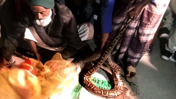 শরণ খোলায় মৎস ঘের থেকে ১২ ফুট লম্বা অজগর উদ্ধার সুন্দরবনে অবমুক্ত