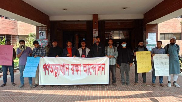 উল্লেখ্য, গত ১৪ নভেম্বর থেকে গণঅভ্যুত্থান রক্ষা আন্দোলনের ব্যানারে ভিসি কোটা বাতিল ও পোষ্য কোটা সংস্কারের দাবিতে ধারাবাহিক আন্দোলন চলছে।