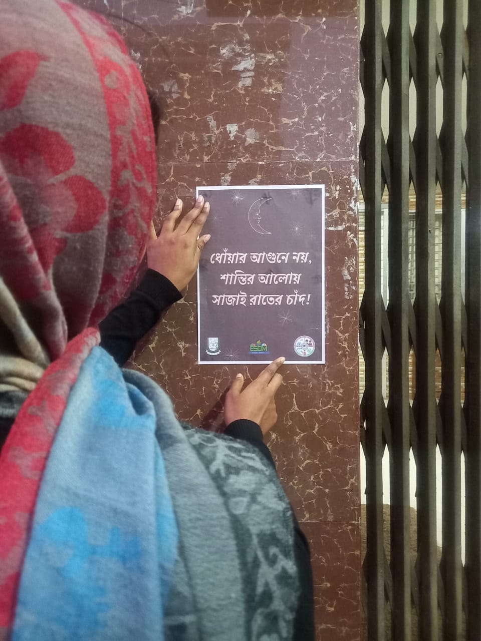 আজ ৩১ ডিসেম্বর ক্যাম্পাস পটুয়াখালী বিজ্ঞান ও প্রযুক্তি বিশ্ববিদ্যালয় ক্যাম্পাসে ইএসডিএম ক্লাবের পক্ষ থেকে জনসচেতনতার উদ্দেশ্যে ক্যাম্পের বিভিন্ন গুরুত্বপূর্ণ জায়গায় যেমন প্রশাসনিক ভবন,টি এস সি ও আবাসিক হলগুলোর প্রবেশদ্বারে জনসচেতনতা মুলক পোষ্টার লাগানো হয় যাতে সাধারণ মানুষকে আতশবাজি ফুটানো ও ফানুস উড়ানো বন্ধে উদ্ভূত করা যায়। এতে করে সবার ভিতর সচেতনতা বৃদ্ধি হবে বলে আশা করেন কমিটির সভাপতি আফিয়া তাহমিন জাহিন এবং আমাদের আরো বলেন যে, গণসচেতনতা বৃদ্ধির মাধ্যমেই সম্ভব বিকল্প পদ্ধতিতে দিবসটি উদযাপন করতে সকলকে উৎসাহিত করা।