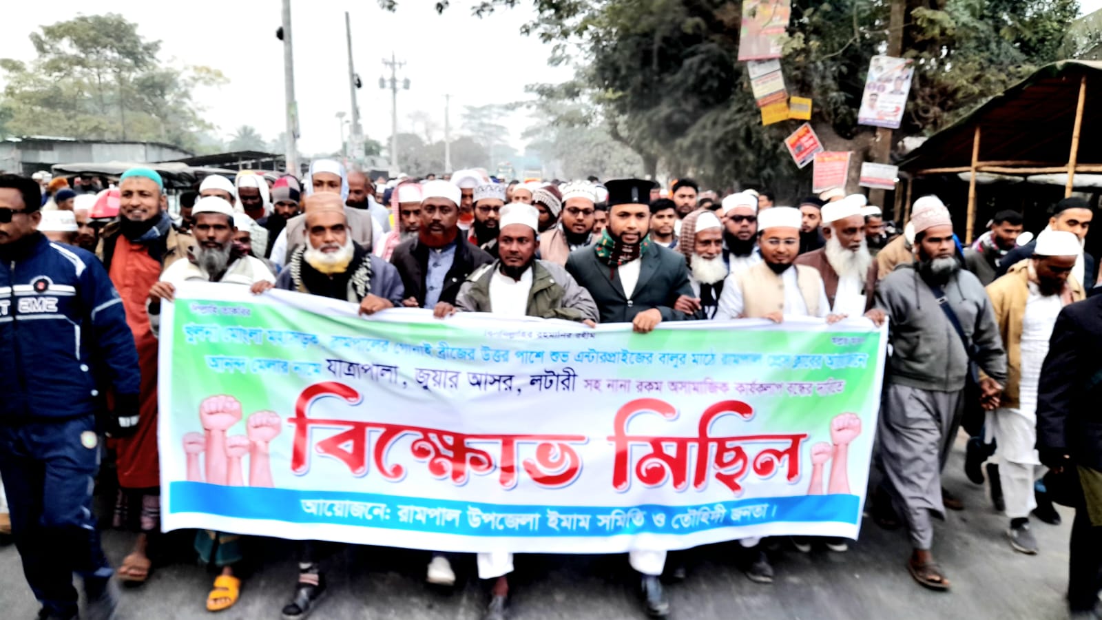 বাগেরহাটের রামপালে যাত্রাপালার নামে অসামাজিক কার্যকলাপ বন্ধের দাবীতে ইমাম সমিতির বিক্ষোভ