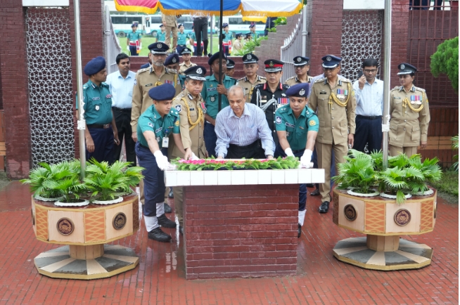 অন্তর্বর্তীকালীন সরকারের স্বরাষ্ট্র উপদেষ্টা লেফটেন্যান্ট জেনারেল মোঃ জাহাঙ্গীর আলম চৌধুরী (অব.) আজ সকালে রাজধানীর রাজারবাগ পুলিশ লাইনসের পুলিশ স্মৃতিস্তম্ভে পুষ্পস্তবক অর্পণ করে মহান মুক্তিযুদ্ধের শহিদ পুলিশ সদস্যদের প্রতি শ্রদ্ধা নিবেদন করেছেন।