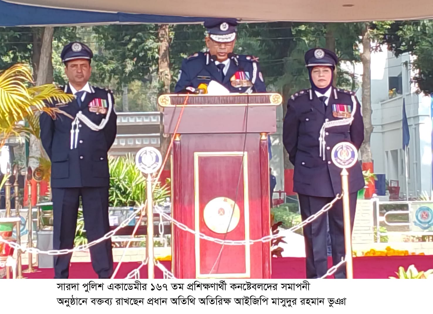 অবশেষে সব ধরণের জল্পনা-কল্পনার অবসান ঘটিয়ে রাজশাহীর সারদা বাংলাদেশ পুলিশ একাডেমীর ১৬৭ তম প্রশিক্ষনার্থী কনষ্টেবলদের সমাপণী কুচকাওয়াজ অনুষ্ঠিত হয়েছে। প্রায় ৩বার সমাপণী কুচকাওয়াজের তারিখ পরিবর্তন করে অবশেষে রবিবার সেই কাংখিত সমাপনী অনুষ্ঠিত হয়। এতে প্রধান অতিথি হিসেবে কুচকাওয়াজ পরিদর্শন অভিবাদন গ্রহণ ও বিভিন্ন বিষয়ে শ্রেষ্ঠত্ব অর্জনকারী টিআরসিদের মধ্যে পুরস্কার বিতরণ করেন বাংলাদেশ পুলিশ একাডেমীর অধ্যক্ষ (অতিরিক্ত আইজিপি) মাসুদুর রহমান ভুঞা বিপিএম।