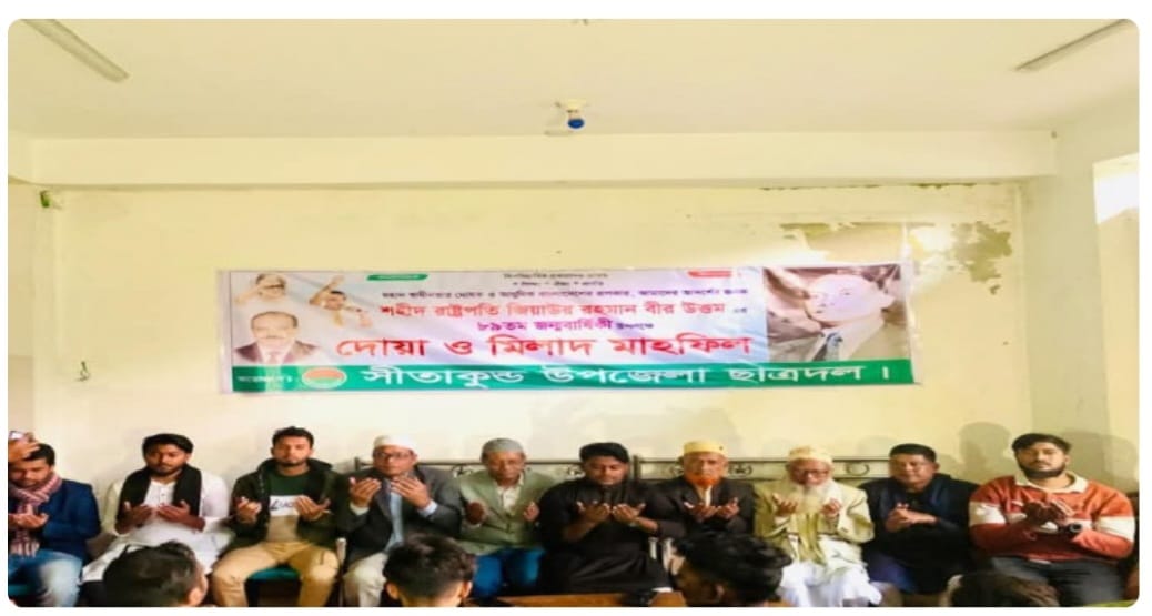 শহীদ জিয়াউর রহমানের জন্মদিন উপলক্ষে সীতাকুণ্ড উপজেলা ছাত্রদলের দোয়া মাহফিল