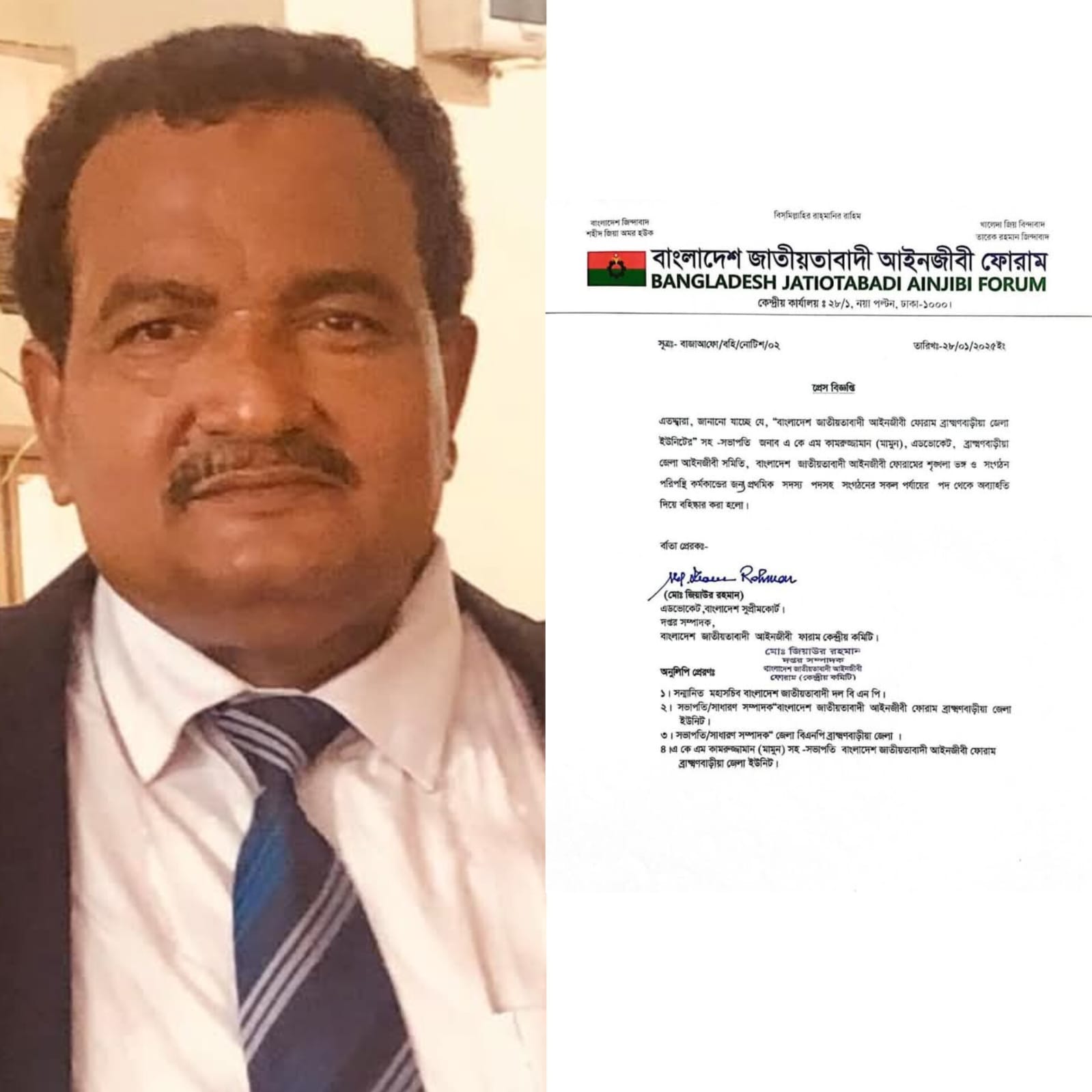 জাতীয়তাবাদী আইনজীবী ফোরাম থেকে এডভোকেট কামারুজ্জামান মামুন বহিষ্কার