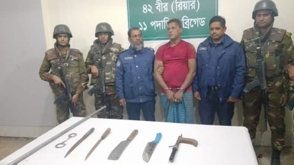 গ্রেফতারের পর তার কাছ থেকে ১টি দেশীয় তৈরি পাইপ গানসহ ডাকাতির কাজে ব্যবহৃত দেশীয় অস্ত্র উদ্ধার করা হয়েছে।