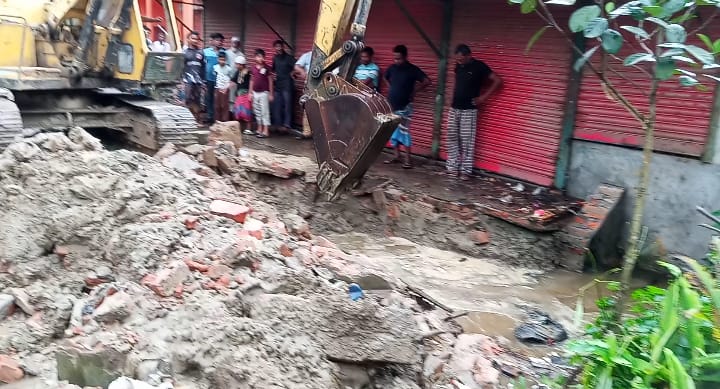 সেনবাগে জলাবদ্ধতায় খালের উপর ঘর নির্মাণে অবৈধ দখল উচ্ছেদ অভিযান