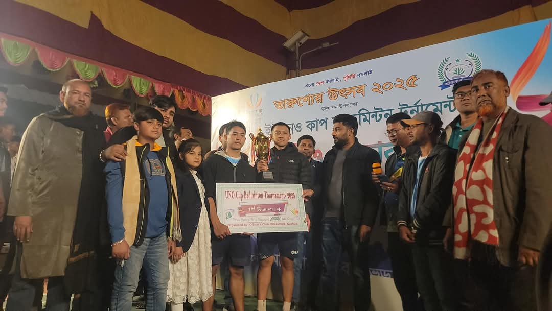 কুষ্টিয়া ভেড়ামারায় ইউএনও কাপ ব্যাডমিন্টন টুর্নামেন্টের চ্যাম্পিয়ন সাথী ফুড পার্ক।