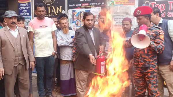 বাসা বাড়ি ও মার্কেটে আগুন লাগলে আতঙ্কিত না হয়ে কি ভাবে সহজেই আগুন নিয়ন্ত্রণে করা যায় তা প্রদর্শনীতে দেখানো হয়।