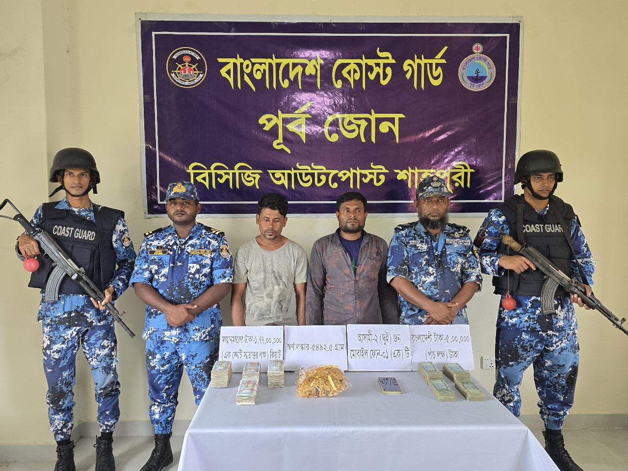 টেকনাফ বিপুল পরিমাণ স্বর্ণালঙ্কার নগদ টাকা মায়ানমার কিয়াটসহ আটক২