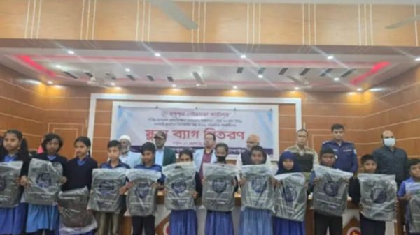 মধুপুরে বিনামূল্যে শিক্ষার্থীদের মাঝে স্কুল ব্যাগ বিতরণ