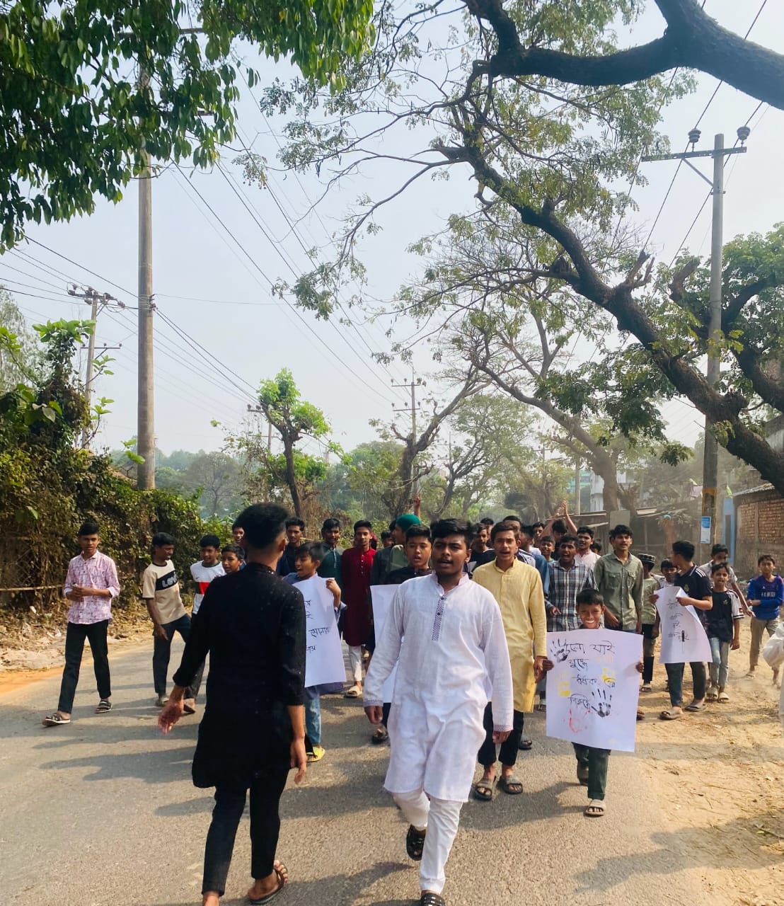 শুক্রবার (২৮ ফেব্রুয়ারি) 'নিপীড়নের বিরুদ্ধে সীতাকুণ্ড উপজেলার কুমিরা ইউনিয়নস্থ বড় কুমিরার নিউ রাজাপুর যুব সমাজের সাধারণ যুবকরা এই মিছিল করেন।