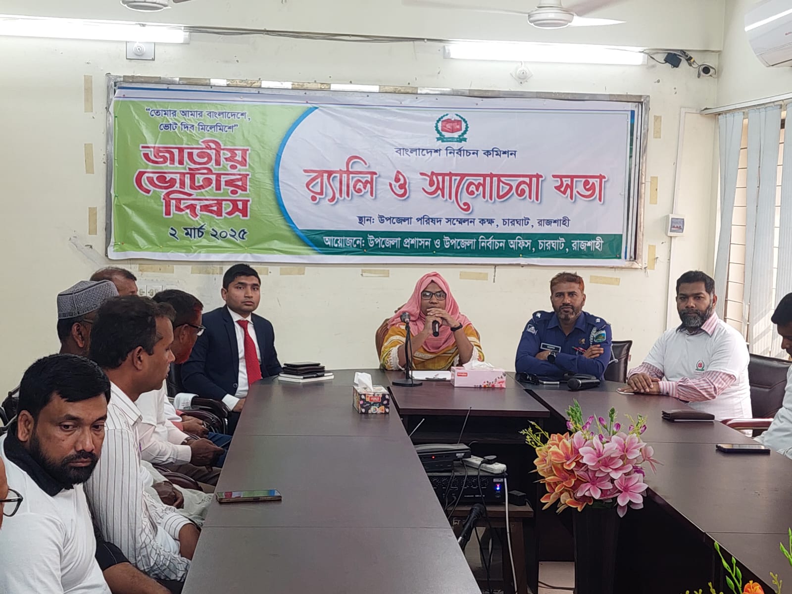 “তোমার আমার বাংলাদেশে ভোট দিব মিলেমিশে” এই প্রতিবাদ্য বিষয়ক সামনে রেখে রাজশাহীর চারঘাটে ও এদিবসটি উপলক্ষে জাতীয় ভোটার দিবস পালিত হয়।