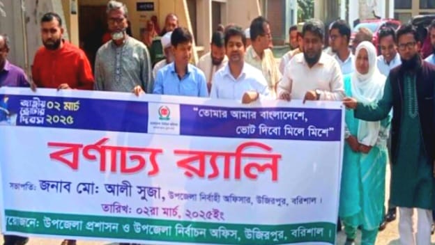 "বরিশাল জেলার উজিরপুর উপজেলায় “তোমার আমার বাংলাদেশে, ভোট দিবো মিলে মিশে” এই প্রতিপাদ্যকে সামনে রেখে, উপজেলা প্রশাসন ও উপজেলা নির্বাচন অফিসের আয়োজনে জাতীয় ভোটার দিবস উপলক্ষে রেলী ও আলোচনা সভা অনুষ্ঠিত হয়েছে।