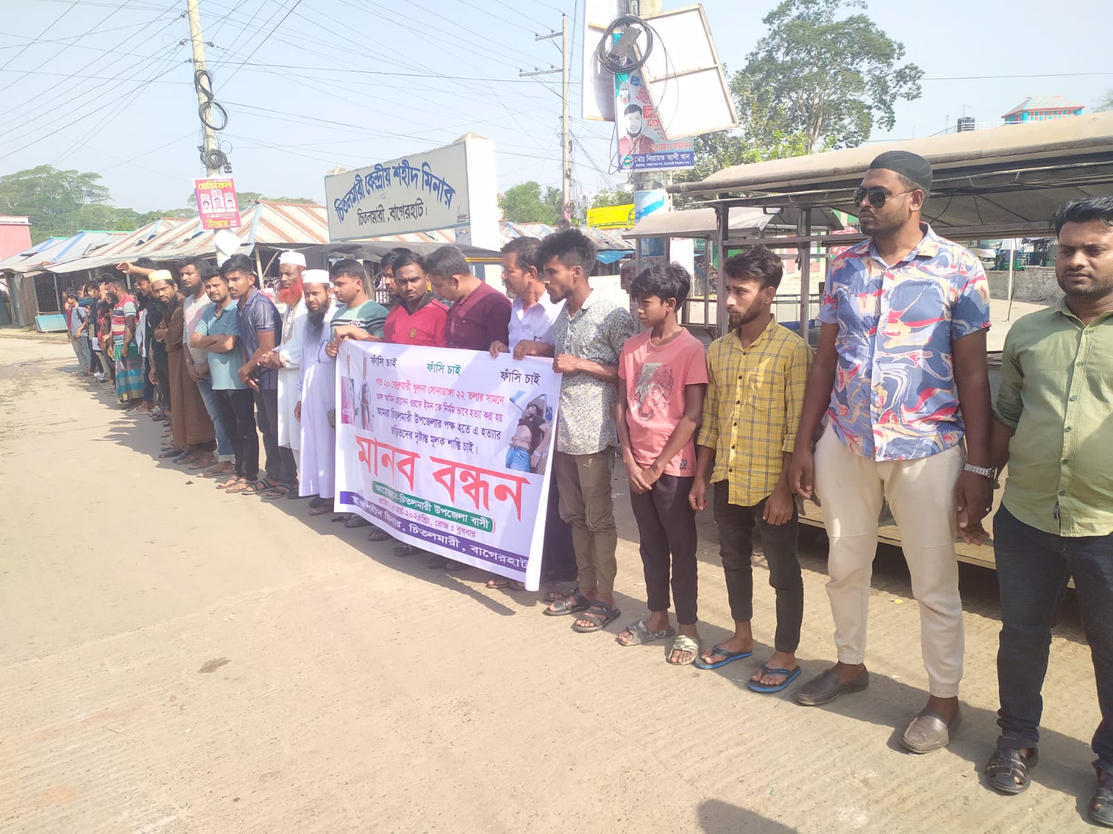 চিতলমারীতে আল আমিন হত্যাকারী জড়িতদের ফাঁসির দাবিতে মানববন্ধন