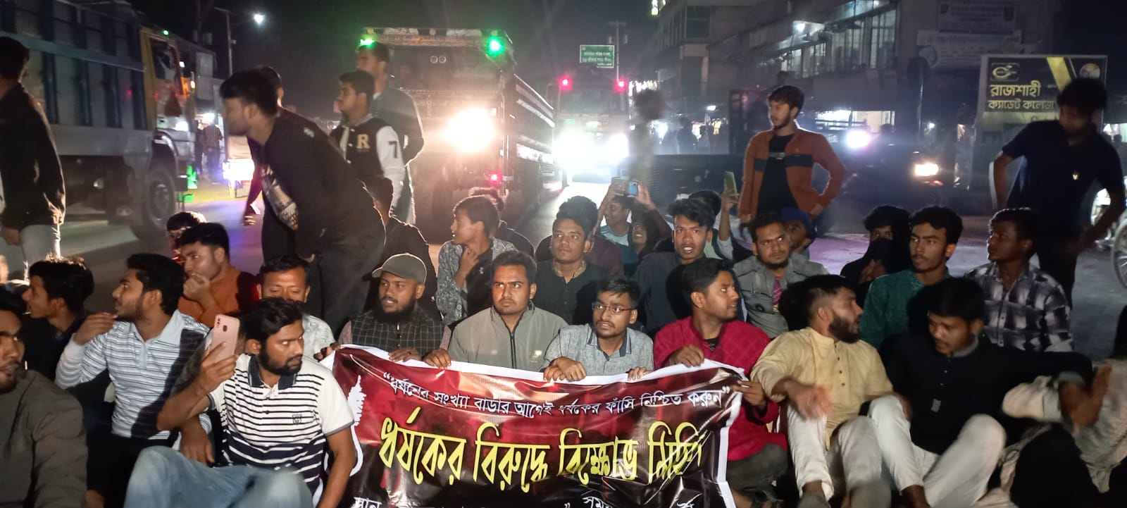 শিশু আছিয়াকে ধর্ষন ও দেশব্যাপী নারী নির্যাতণ, স্কুল কলেজের শিক্ষার্থী হেনস্তার প্রতিবাদে শিক্ষার্থীরা বিক্ষোভ মিছিল করেছে। মিছিল টি বানেশ্বর ট্রাফিক মোড় থেকে বিক্ষোভ মিছিল নিয়ে রাজশাহী-ঢাকা মহাসড়কে প্রদক্ষিন করে বানেশ্বর ট্রাফিক মোড়ে রাজশাহী-ঢাকা মহাসড়কের উপর বসে বিভিন্ন শ্লোগান দিয়ে প্রায় ৩০ মিনিট যান চলাচল অবরোধ করেন। এ সময় তারা স্লোগানে স্লোগানে মুখরিত করে তুলেন বানেশ্বর ট্রাফিক মোড় এলাকা।স্লোগানে বলেন,