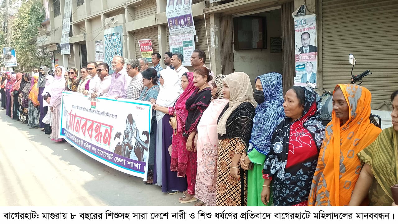 ধর্ষকদের বিচার দাবিতে বাগেরহাটে মহিলাদলের মানববন্ধন