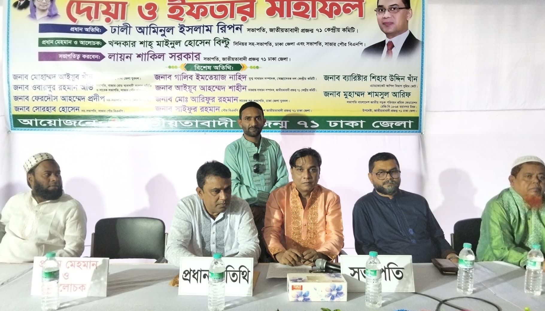 দেশনেত্রী বেগম খালেদা জিয়ার পরিপূর্ন সুস্থতা কামনা ও গণতন্র পুনরুদ্ধার আন্দোলনে নিহত সকল শহীদের বিদেহী আত্মার মাগফিরাত কামনায় ইফতার ও দোয়া মাহফিল।