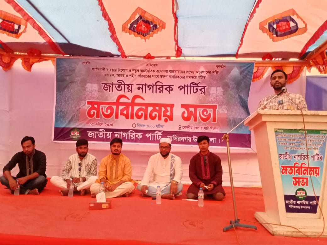 আগামীতে যেন আর কোনো ফ্যাসিবাদী শক্তি মাথাচাড়া দিতে না পারে সেদিকে সকলের সজাগ দৃষ্টি রাখতে হবে৷সভার শুরুতে কোরআন তেলাওয়াত করেন সারোয়ার আহমেদ শুভ। এনসিপি নাসিরনগর শাখার সংগঠক কাজি মমিনুল হাসানের সভাপতিত্বে ও জুবায়ের আহমেদের সঞ্চালনায় বক্তব্য রাখেন মো. আজিজুল হক, ইকতার হোসাইন,সাইফুজ্জামান জনি, সাদ্দাম হোসেন, মো. সাইফুল ইসলাম, মো. রাকিবুল ইসলাম, মো. হুমায়ূন মিয়া।