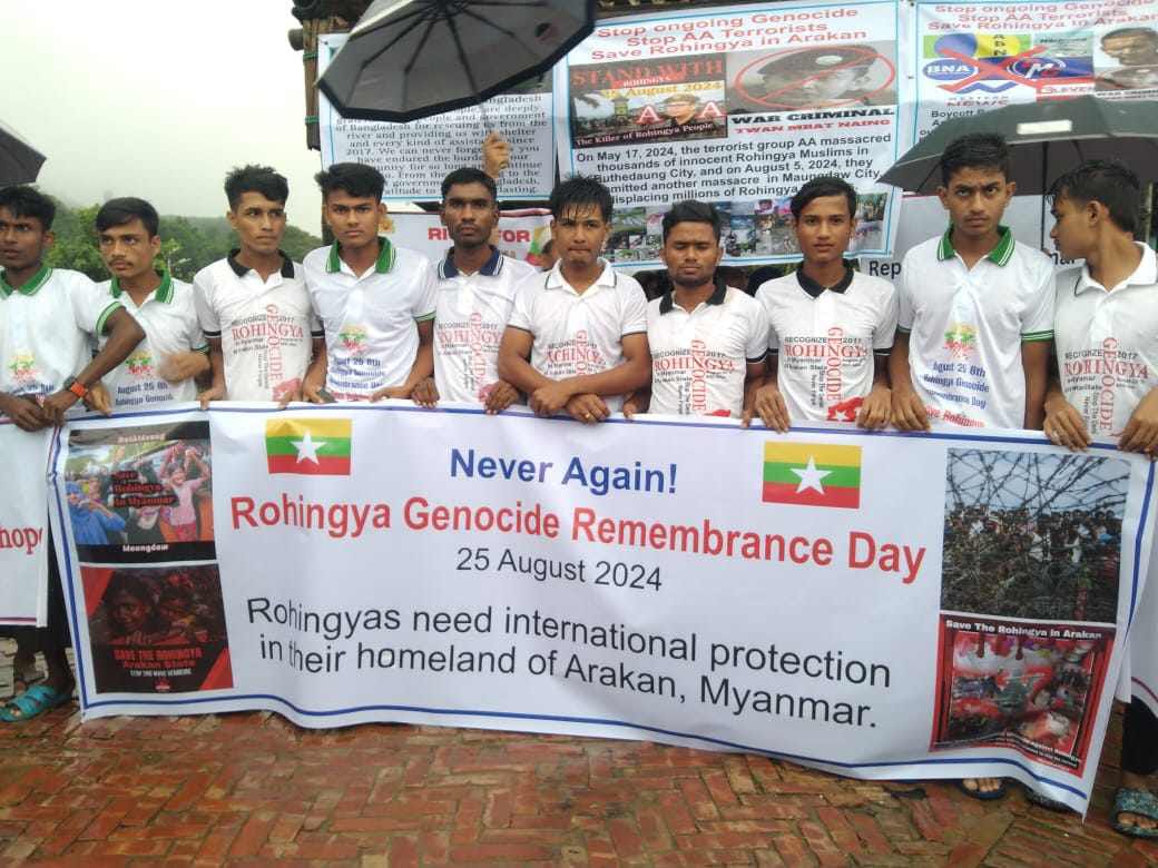 সভায় বিভিন্ন দাবী সম্বলিত ফেস্টুন, ব্যানার নিয়ে বৃষ্টি উপেক্ষা করে রোহিঙ্গারা অংশ গ্রহন করেন। এসময় মিয়ানমারে নাগরিকত্ব নিয়ে ফিরতে চাই, নিরাপদ প্রত্যাবাসন চাই' শ্লোগান ও বক্তবে আন্তর্জাতিক সংশ্লিষ্টদের প্রতি দাবী জানান বক্তারা।