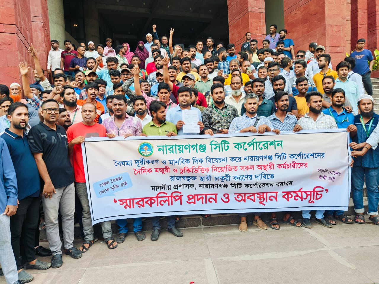 নারায়ণগঞ্জ সিটি করপোরেশনে অস্থায়ী কর্মচারীদের স্থায়ী করণের লক্ষ্যে স্মারকলিপি এবং অবস্থান কর্মসূচী