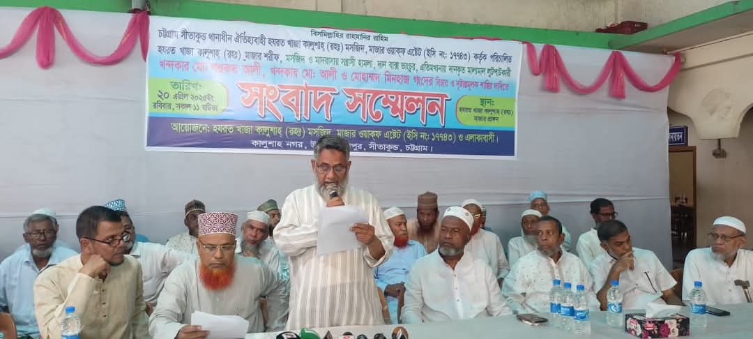 গত( ২০ এপ্রিল) কালুশাহ্ ( রহঃ) মাজার এতিমখানার সামনে এক সংবাদ সম্মেলন করে অভিযোগ করেন ওয়াকফ এষ্টেট পরিচালনা কমিটিরনেতৃবৃন্দ ও এলাকাবাসী।