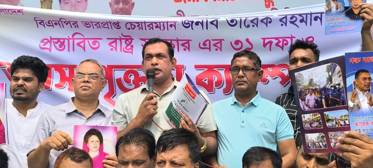 তিনি আরো বলেন ফ্যাসিস্ট শেখ হাসিনা সরকার ও তার দোসর বাহিনী সারা বাংলাদেশের বিভিন্ন রাষ্ট্রীয় অবকাঠামো ব্যবহার করে বাংলাদেশ মানুষ যে নির্যাতিত করেছে ও বিরোধী দল কে দমন করছে সেই ইতিহাস যেনো আর ফিরে না আসে তার জন্য রাষ্ট্র কল্যাণ এর জন্য ভোট অধিকার ফিরিয়ে আনার জন্য আজকের এই তারেক রহমানের রাষ্ট্র ৩১ দফা কর্মসূচী। এই ৩১ দফা মানুষের ঘরে ঘরে দুয়ারে দুয়ারে পৌছে দিতে হবে।