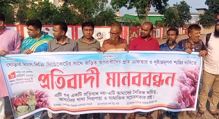 গজারিয়ায় ঘোড়ার মাংস বিক্রি সিন্ডিকেটের বিরুদ্ধে মানববন্ধন