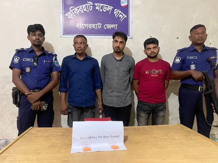 বাগেরহাটের ফকিরহাটে ২০০ পিস ইয়াবা সহ তিন মাদক কারবারি গ্রেফতার