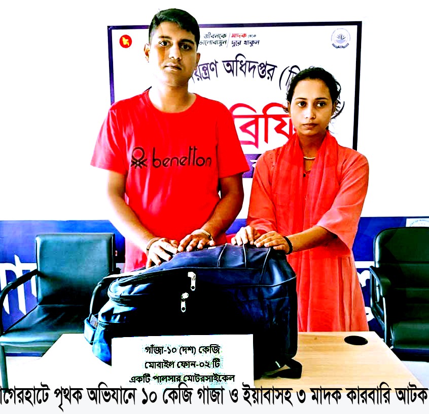 বাগেরহাটে ১০ কেজি গাজা ও ইয়াবাসহ ৩ মাদক কারবারি গ্রেপ্তার