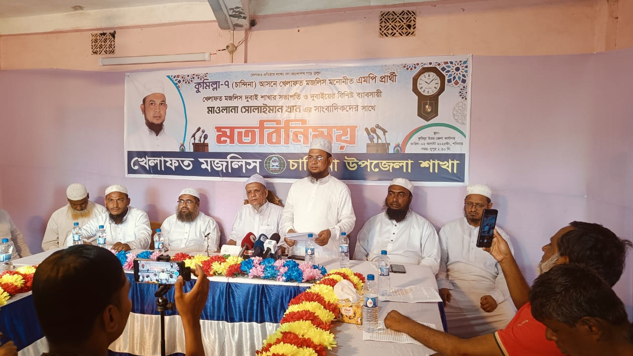 কুমিল্লা ৭ ( চান্দিনা) আসনে আসন্ন জাতীয় সংসদ নির্বাচনে, খেলাফত মজলিস মনোনীত প্রার্থী মাওলানা সোলায়মান খানকে ঘিরে এক মতবিনিময় সভা অনুষ্ঠিত হয়েছে।
