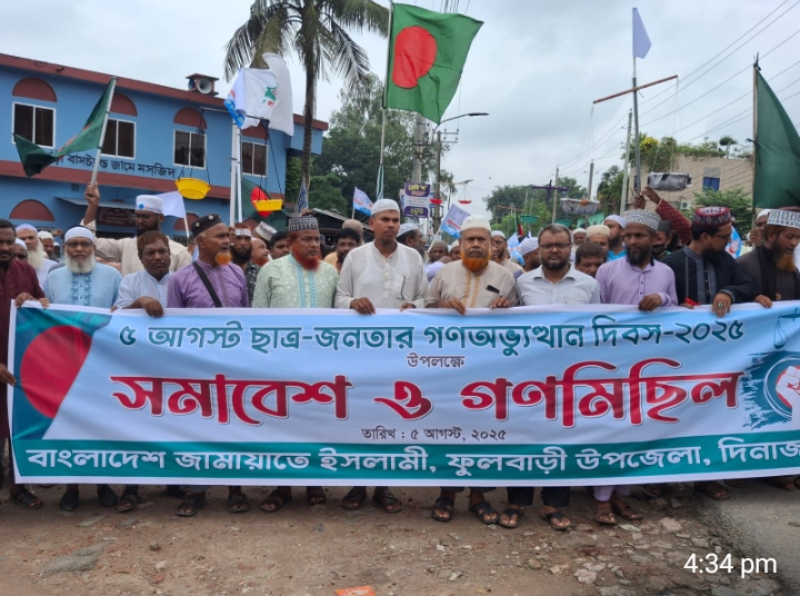 ৫ই আগস্ট ছাত্র-জনতার গণঅভ্যুত্থানের দিবস উপলক্ষে ফুলবাড়ীতে জামায়াতে ইসলামী র‍্যালী সমাবেশ ও গণমিছিল অনুষ্ঠিত অনুষ্ঠিত।
