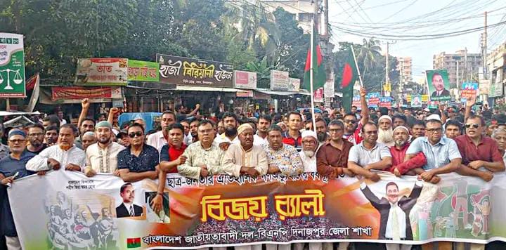ছাত্র-জনতার ঐতিহাসিক গণঅভ্যুত্থানের বর্ষপূর্তি উপলক্ষে বাংলাদেশ জাতীয়তাবাদী দল (বিএনপি) দিনাজপুর জেলা শাখার আয়োজনে এক বর্ণাঢ্য বিজয় র্যালি অনুষ্ঠিত হয়েছে। বুধবার (৬ আগস্ট ২০২৫) বিকেলে দিনাজপুর ইনস্টিটিউট প্রাঙ্গণ থেকে র্যালিটি শুরু হয়ে শহরের প্রধান প্রধান সড়ক প্রদক্ষিণ শেষে একই স্থানে এসে শেষ হয়।