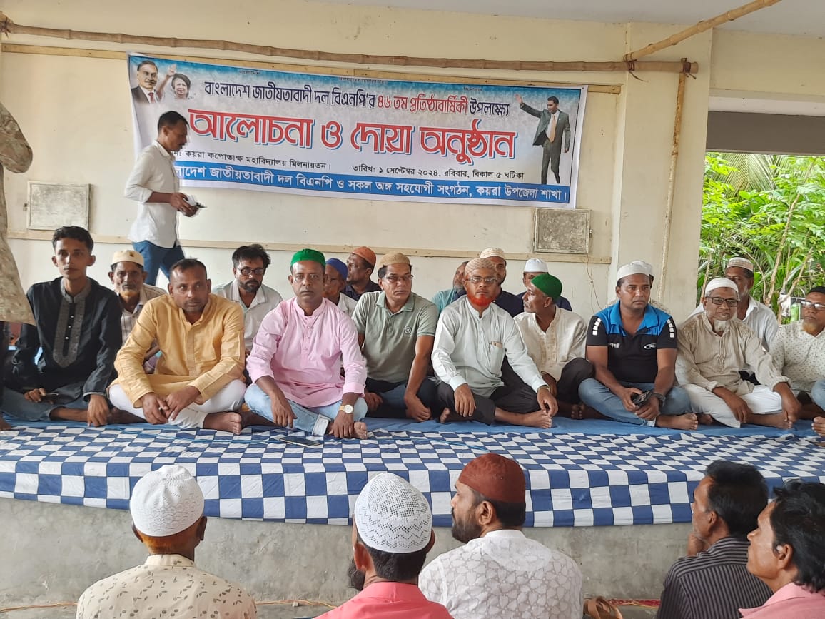 নানা আয়োজনের মধ্য দিয়ে বিএনপি'র ৪৬তম প্রতিষ্ঠা বার্ষিকী পালিত হয়েছে। (১সেপ্টেম্বর) বিকেল ৩ টায়, কয়রা উপজেলা বিএনপির আয়োজনে কপোতাক্ষ মহাবিদ্যালয়ের হলরুমে এই ৪৬ তম প্রতিষ্ঠা বার্ষিকী পালিত হয়েছে।