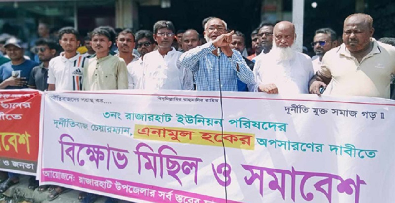 কুড়িগ্রামের রাজারহাটে এক ইউপি চেয়ারম্যানের অপসারণের দাবীতে বিক্ষোভ মিছিল ও সমাবেশ অনুষ্ঠিত হয়েছে।
