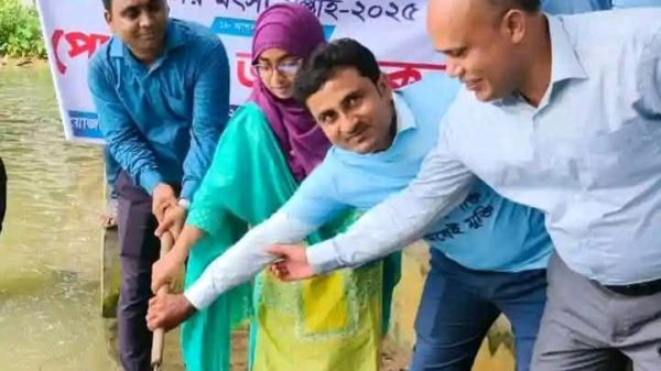 ২০২৫-২৬ অর্থবছরের “বেশি প্রজাতির মাছ ও শামুক সংরক্ষণ ও উন্নয়ন প্রকল্প” এর আওতায় উপজেলার বিভিন্ন প্রাতিষ্ঠানিক জলাশয়, সরকারি খাল, বিল ও নদীতে এই পোনা অবমুক্ত করা হচ্ছে।