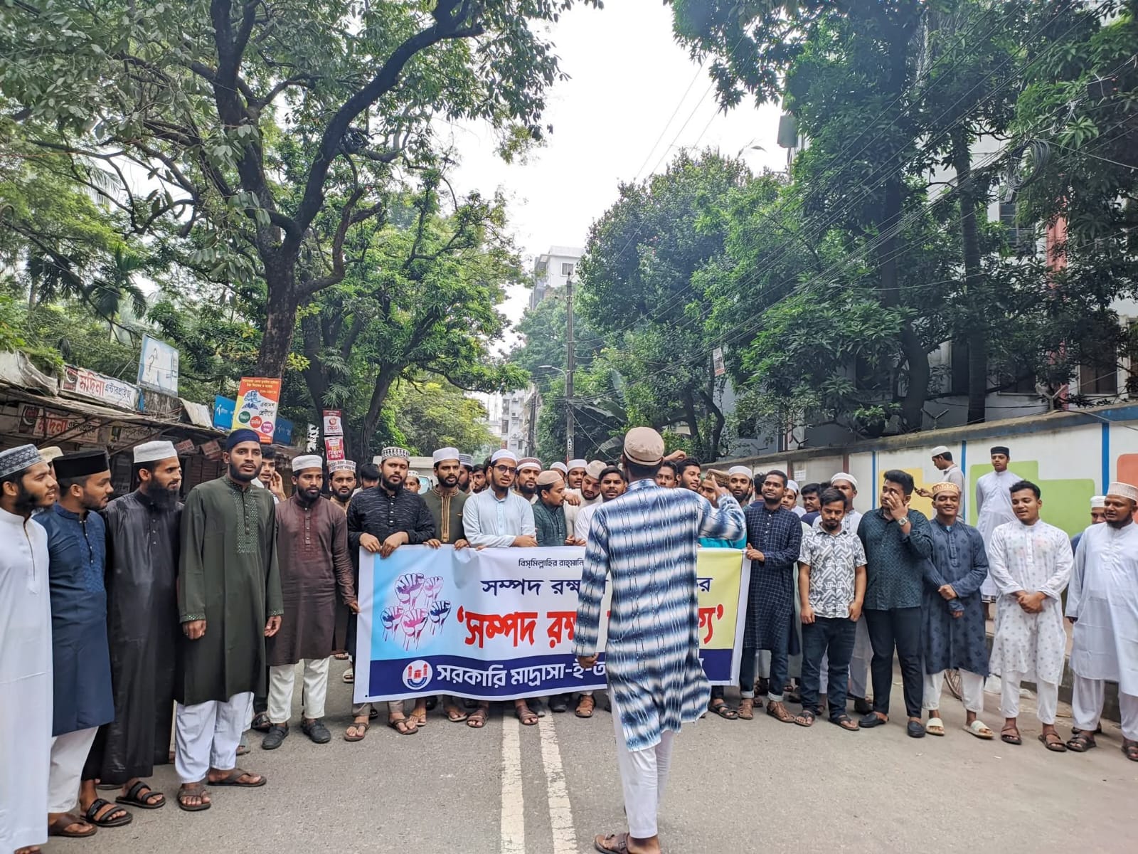 বাংলাদেশের প্রাচীনতম ইসলামি শিক্ষা প্রতিষ্ঠান সরকারি মাদ্রাসা-ই-আলিয়া, ঢাকা-র উদ্যোগে আজ জুম্মার নামাজের পর “সম্পদ রক্ষায় ছাত্র ঐক্য” ব্যানারে এক মানববন্ধন ও বিক্ষোভ মিছিল অনুষ্ঠিত হয়।