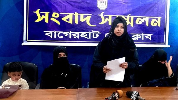 বাগেরহাটে পিতার হত্যার বিচারের দাবীতে মেয়ের সংবাদ সম্মেলন