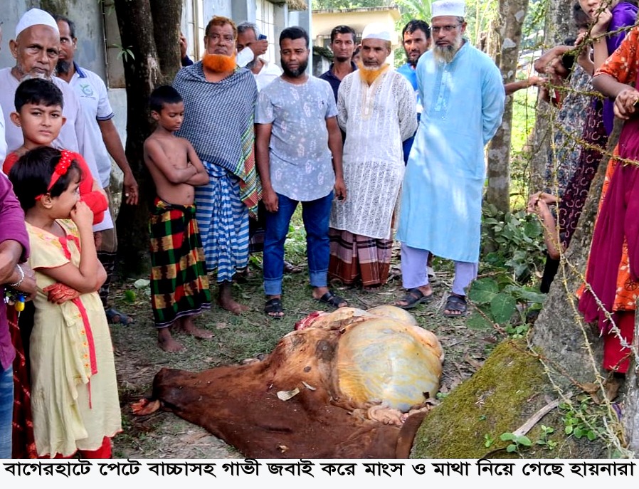 বাগেরহাটে পেটে বাচ্চাসহ গাভী জবাই করে মাংস ও মাথা নিয়ে গেছে হায়নারা