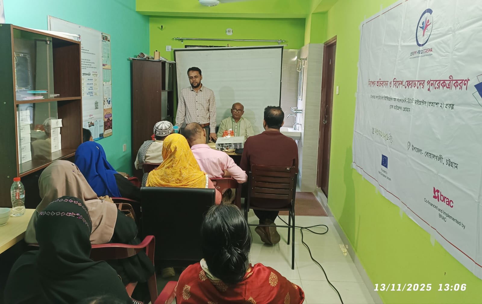 ব্র্যাক মাইগ্রেশন (ইমপ্রুভড সাসটেইনেবল রিইন্টিগ্রেশন অব বাংলাদেশি রিটার্নি মাইগ্রেশন)(প্রত্যাশা-২) এর মানবিক সংগঠন "প্রবাসবন্ধু ফোরাম"র ত্রৈমাসিক এক সভা ১৩ নভেম্বর বেলা ১২ টায় অনুষ্ঠিত হয়।