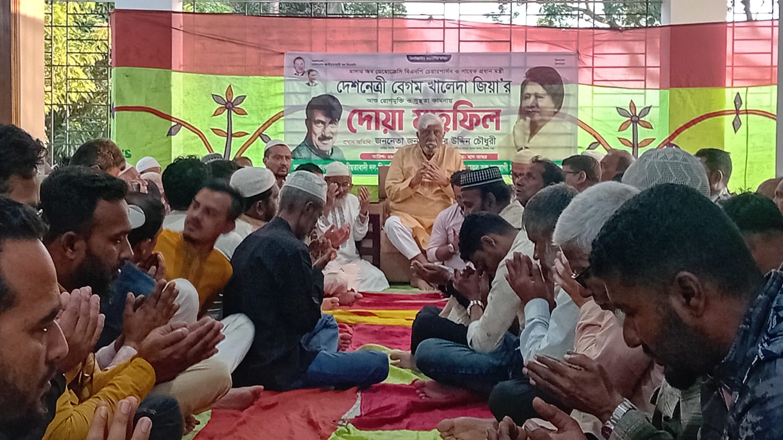 কেন্দ্রীয় কর্মসূচির অংশ হিসেবে বিএনপি চেয়ারপারসন বেগম খালেদা জিয়ার সুস্থতা কামনা করে দোয়া ও মাহফিল অনুষ্ঠিত হয়েছে। শুক্রবার (২৮ নভেম্বর) বিকাল পাঁচ ঘটিকায় স্থানীয় দিরাই উপজেলা ডাকবাংলোতে সুনামগঞ্জ -০২ আসনের সাবেক সাংসদ ও বিএনপির জাতীয় নির্বাহী কমিটির সদস্য নাছির চৌধুরীর উদ্যোগে দোয়া মাহফিলের আয়োজন করা হয়।