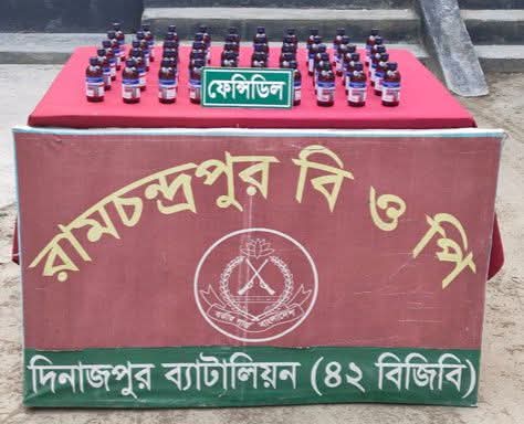 বিরলে বিজিবি কর্তৃক ভারতীয় ফেন্সিডিল আটক