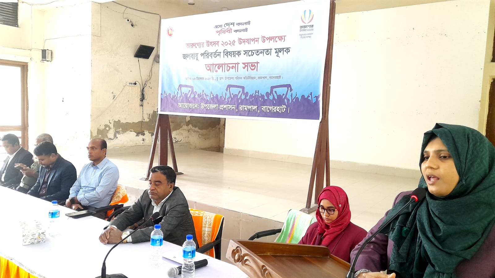 বাগেরহাটের রামপালে দিনব্যাপী তারুণ্যের উৎসব পালন করা হয়েছে। বুধবার (৩ ডিসেম্বর) সকাল ১০ টায় উপজেলা পরিষদ মিলনায়তনে এ উপলক্ষে বাল্য ও নারী নির্যাতন প্রতিরোধ, সামাজিক নিরাপত্তামূলক সচেতনতা সভা, জলবায়ু পরির্তন বিষয়ক সচেতনতামূলক আলোচনা সভা, স্বাস্থ্য পরীক্ষা ও পিঠা উৎসব অনুষ্ঠিত হয়।