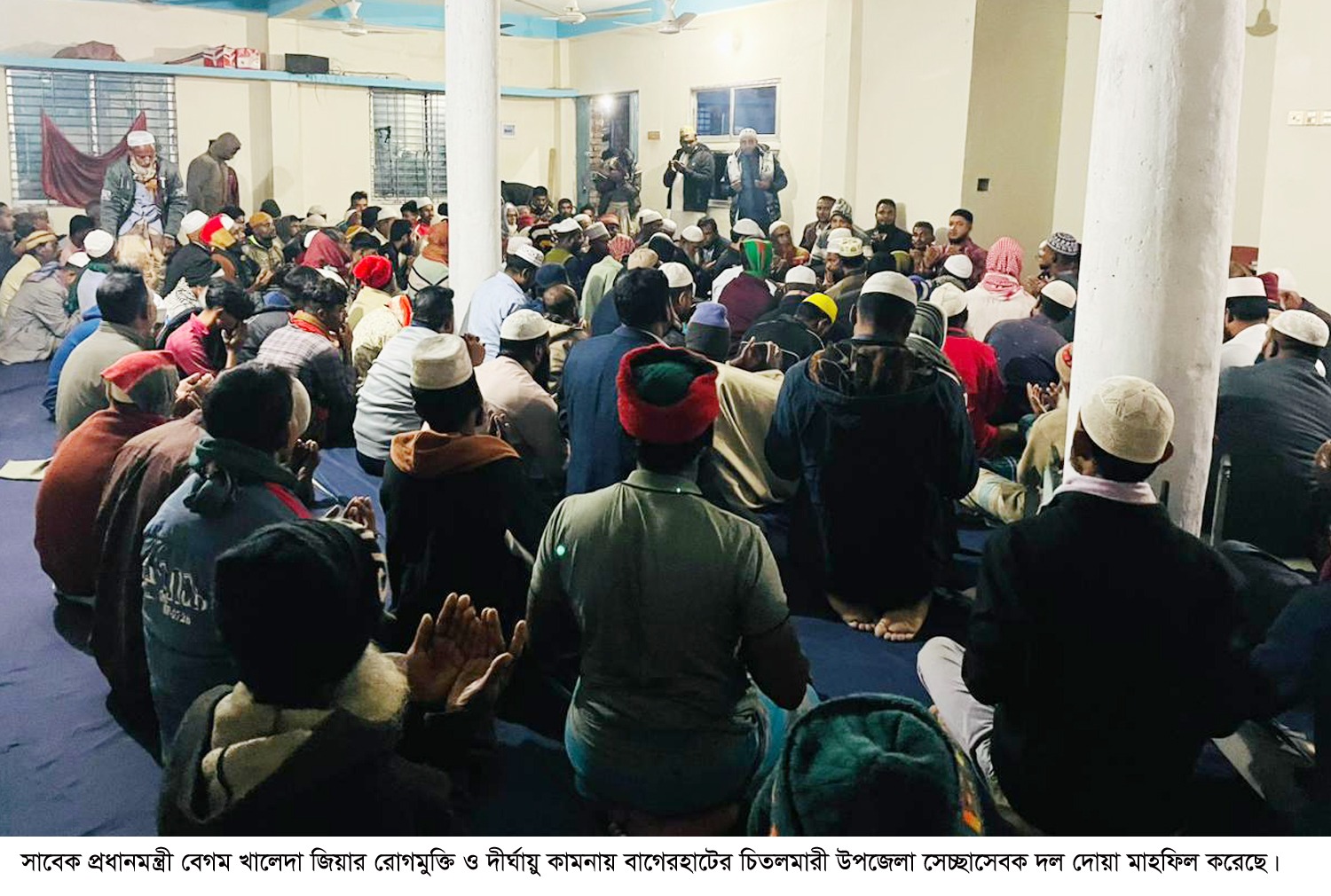 খালেদা জিয়ার রোগমুক্তি কামনায় চিতলমারীতে সেচ্ছাসেবক দলের দোয়া মাহফিল