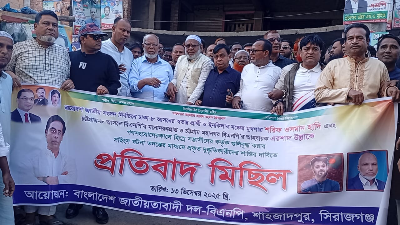 শরীফ ওসমান হাদি ও এরশাদ উল্লাহকে প্রকাশ্যে গুলি করায় প্রতিবাদ মিছিল।