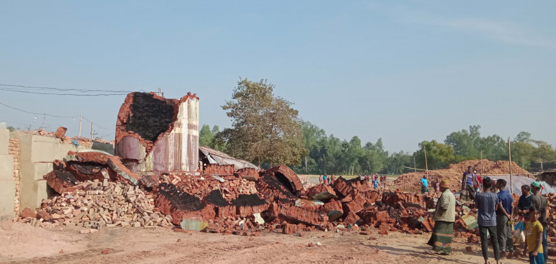 পার্বতীপুর অবৈধ ইটভাটা মালিককে ১১ লাখ টাকা জরিমানা, চিমনি ভেঙে ফেলা হয় ৪টি ইটভাটার