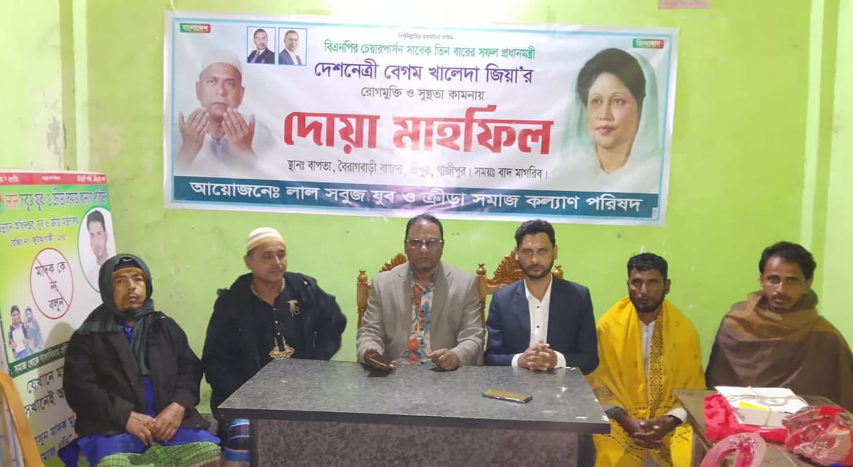 কাওরাইদ বাপতা, লাল সবুজ যুব ও ক্রীড়া সমাজ কল্যাণ পরিষদের আয়োজনে বিএনপি চেয়ারপারসন তিন বারের প্রধানমন্ত্রী দেশনেত্রী বেগম খালেদা জিয়ার জন্য দোয়া মাহফিল অনুষ্ঠিত।