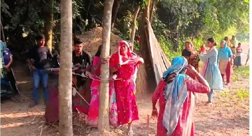 সিরাজগঞ্জে গাছের সঙ্গে বেঁধে নারী নি’র্যাতনের অভিযোগ।