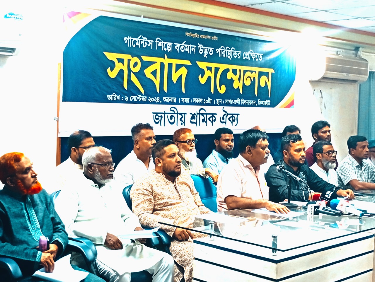 গার্মেন্টস শিল্পের বর্তমান উদ্ভুত পরিস্থিতির প্রেক্ষিতে জাতীয় শ্রমিক ঐক্যের সংবাদ সম্মেলন অনুষ্ঠিত