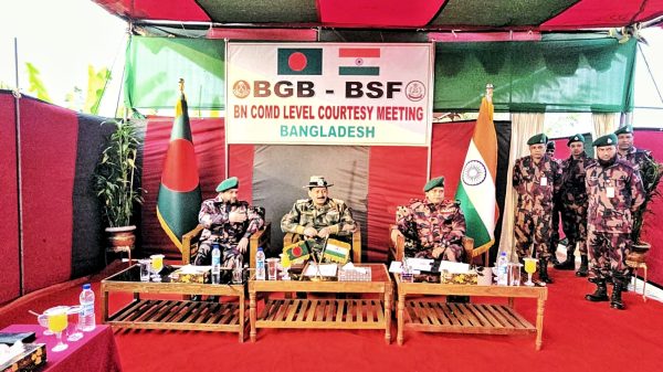বুধবার ৭ জানুয়ারী দুপুর ২ টা ৩০ মিনিট থেকে বিকেল ৫ টা পর্যন্ত ফুলবাড়ী ২৯ ব্যাটালিয়ন বিজিবি’র অধীনস্থ সুন্দরা বিওপির দায়িত্বপূর্ণ এলাকার সীমান্ত পিলার নং ৩১৯ এমপি হতে আনুমানিক ১০ গজ বাংলাদেশের অভ্যন্তরে সুন্দরা নামক স্থানে দুই দেশের বিজিবি বিএসএফ ব্যাটালিয়নের অধিনায়ক পর্যায়ে সৌজন্য সাক্ষাৎ অনুষ্ঠিত হয়।